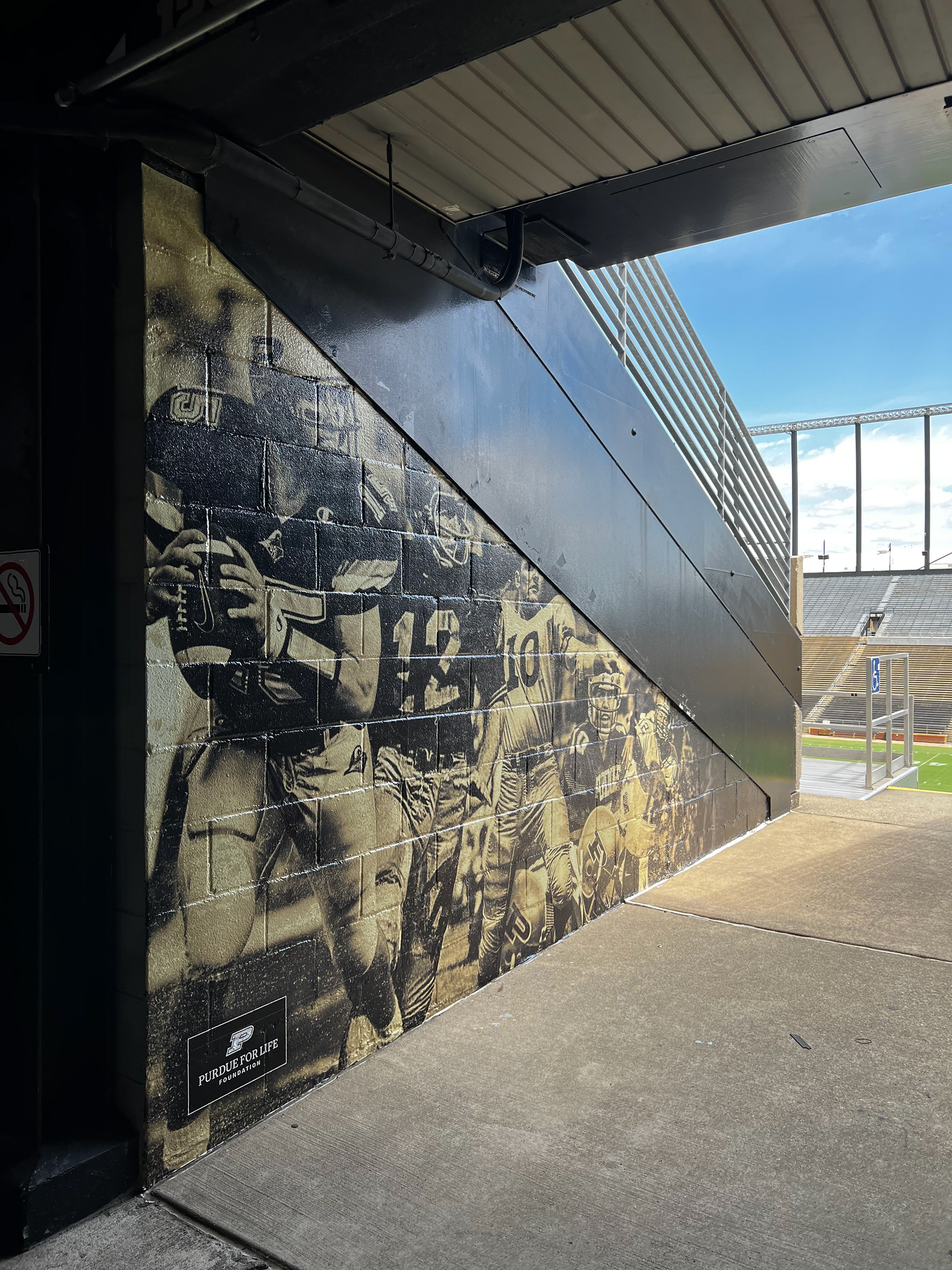 As the Assistant Director of Creative for Purdue Football, my primary responsibility is developing recruiting graphics. These visuals are sent to prospective players being considered for our team, showcasing what our program offers and how it can positively impact their future. Each graphic is designed for easy customization, allowing modifications for over 150 players by altering images, jersey numbers, skin tones, and more. Additionally, I assist in creating social media graphics, planning future content, and providing team photography at games and events.